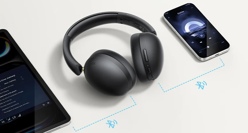 В наушниках установлены динамические излучатели диаметром 40 мм, работающие в формате 2.0. Звук сбалансированный, с уверенной серединой и четким верхом, без перекоса в одну сторону. Поддержка кодеков AAC и SBC обеспечивает стабильную передачу аудио по Bluetooth без заметных задержек и искажений при прослушивании музыки, видео и подкастов.